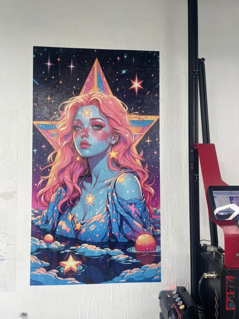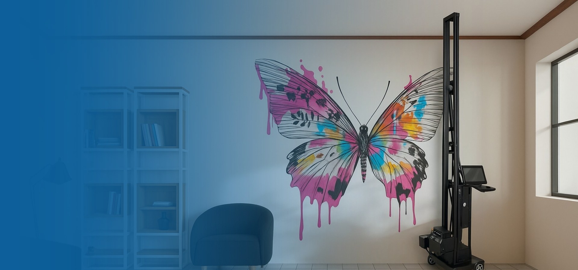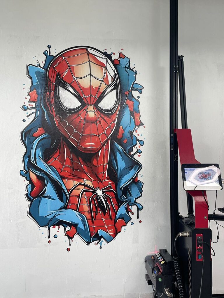 Unser vertikaler UV-Drucker bringt brillante Farben direkt auf Ihre Wand – ohne Folie oder Kleber.